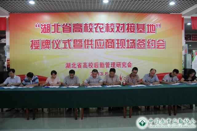 二、总结经验,逐步推广。为总结农校对接工作经验,肯定农校对接工作成绩,充分调动高校的积极性和创造性,湖北省委高校工委、省教育厅根据对各高校农校对接工作开展情况的考察,授予武汉大学等20所高校为“湖北省农校对接工作先进高校”。经企业申报,学校推荐,专家评审,认定武汉兴正实业有限公司等37个单位为“湖北省高校农校对接基地”。并于今年8月26日,在武汉大学组织召开了“湖北省高校农校对接基地”授牌仪式暨供应商现场签约会,24所高校后勤单位负责人及44个农副产品供应商代表出席了会议,现场观摩了供应商提供的展品,校企双方进行了坦诚沟通、洽谈。会上,对37家对接基地进行了现场授牌,5家供应商与对接高校后勤负责人现场签约。
