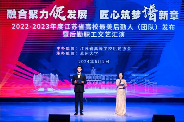 融合聚力促发展,匠心筑梦谱新章。6月2日,由江苏省高等学校后勤协会主办,苏州大学承办的“2022-2023年度江苏省高校最美后勤人、最美后勤团队发布暨后勤职工文艺汇演”在苏州大学隆重举行。