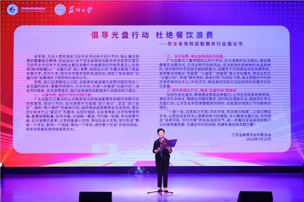 为深入贯彻落实习近平总书记关于厉行节俭、制止餐饮浪费的重要指示精神,会上,苏小冬宣读《倡导光盘行动 杜绝餐饮浪费》倡议书,代表协会向全省高校后勤工作者发出倡议,倡议提出要进一步推进“光盘行动”,深化节约粮食、反对浪费理念。