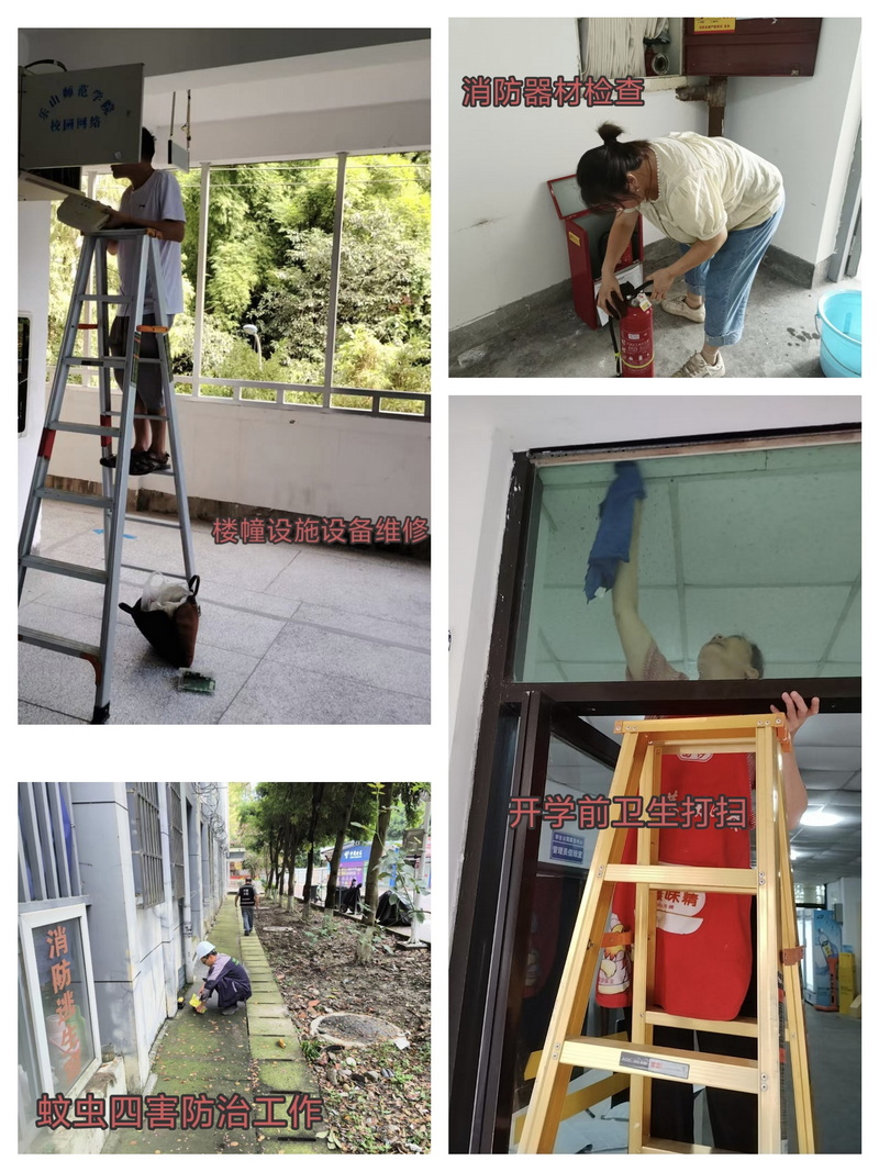 迎新工作启动前,学生公寓中心积极开展“护航行动”。工作人员对全校公寓楼宇开展全方位清洁,从楼道、走廊到宿舍房间逐一清扫、不留死角;同步开展专业“灭四害”工作,对公寓公共区域、宿舍角落及楼宇周边进行集中消杀,有效清除蚊虫、蟑螂、老鼠等病媒生物隐患;同时,对家具、水电、卫浴等设施进行地毯式排查,及时报修更换损坏部件,全力营造安全、整洁、舒适的住宿环境。