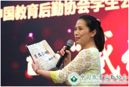 年会结束后,举办了首届“感动公寓”人物颁奖典礼,为10位获奖的“感动公寓”人物颁发了奖杯和证书。荣获首届全国高校“感动公寓”人物者从全国20多个省市的众多提名者中脱颖而出,绝大多数都是奋战在高校学生公寓战线的基层员工和管理者。他们分别是来自辽宁科技大学龙源公寓仁爱楼楼长马桂华、太原理工大学公寓管理服务中心主任师红军、河南工业大学学寓中心副经理杜月华、中南大学升华学生公寓20栋值班员李雄姿、上海师范大学后勤实业中心副主任张红英、河北师范大学党委学生工作处副处长张昭、清华大学物业管理中心紫荆学生公寓16号楼楼长尚杰、华中科技大学紫菘公寓13栋楼管员周凤琴、浙江农林大学后勤集团管理员章学青、黑龙江大学学生处宿舍管理科公寓辅导员董可心。10位获奖者共同的特点是扎根基层公寓一线,爱岗敬业、全心全意服务学生,在平凡的工作岗位上做出了不平凡的业绩。在学生们的眼中他(她)们是知心哥哥、知心姐姐、好阿姨、好妈妈。他们用自己的辛勤汗水和一片爱心,温暖和照亮了身边的每一个人。颁奖典礼分别播放了每位获奖人物先进事迹的短片,榜样的先进事迹感染了每一位在场的人,动情之处,许多人流出了感动的泪水。