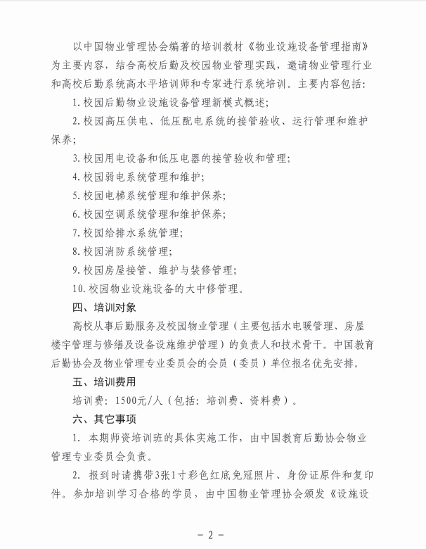 关于举办“首期全国高校后勤设施设备管理专业岗位师资培训班”的通知