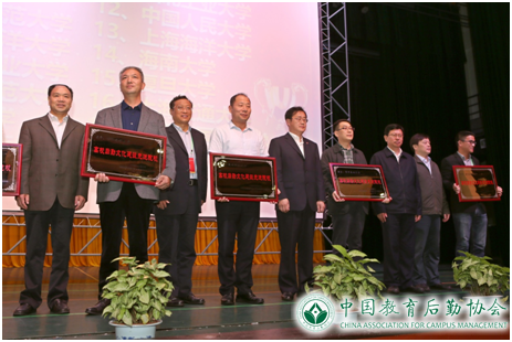 第二阶段进入高校后勤文化建设评优活动颁奖典礼。张柳华,刘东志,陈锐,姜彤伟,焦伟,江南大学副校长田备,专委会副主任、东北大学副校长孙雷,专委会秘书长、中国海洋大学后勤集团总经理王哲强分别为西南大学、江南大学、山东科技大学、苏州苏大教育服务投资发展集团、东北大学5所优秀示范院校(企业),为浙江农林大学、华中农业大学、郑州大学、陕西师范大学、中国海洋大学、浙江工业大学、杭州师范大学、东南大学、上海建桥学院、盐城工学院、西北工业大学、中国人民大学、上海海洋大学、海南大学、复旦大学、上海交通大学、上海外国语大学等17所先进院校代表颁奖。