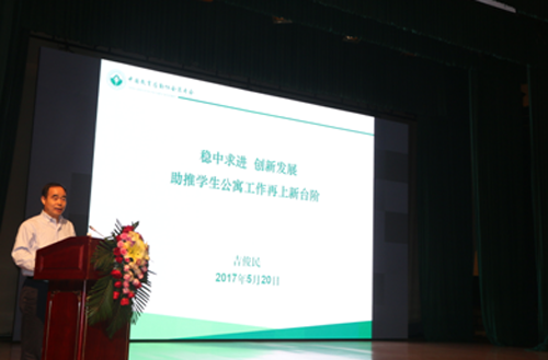 吉俊民主任在报告中就未来一段时间做好学生公寓工作,提出五点思考。一是探寻在公寓内开展学生思想教育的新途径,发挥学生公寓工作在立德树人中不可替代的作用。主动、自信、充满个性地参与到育人过程中去,实现学生公寓工作与育人的有机结合。不断加强以育人为中心的公寓文化建设,深化公寓育人功能,打造育人公寓。二是深入推进公寓标准化建设,各地各校要重点加强对标准的学习理解和把握,加强对标准化公寓工作的指导和培训。依据标准,从根本上减少学生公寓管理工作中的随意性,以标准助推公寓服务保障水平的提升,打造标准化公寓。三是秉持开放心态,解放思想,更新观念,积极引入新理念、新模式、新技术,加大创新实践力度和各类创新成果的应用。推动模式创新、服务创新、管理创新,实现公寓管理服务从传统型向现代智慧型转型升级,打造创新公寓。四是从制度建设入手,健全人防、物防、技防措施,构建完善的公寓安全体系。定期开展安全隐患排查,及时消除隐患、化解矛盾、完善预案、培训演练。提高应对突发事件和处理问题的能力,筑牢安全防线,打造平安公寓。五是希望各地各校加强学习交流,融通管理模式,承载历史传承,兼顾环境条件。充分利用和建设各种平台,加强学习交流,既传承优秀公寓文化,又积极博采吸纳创新,紧密结合自身实际,百花齐放,打造特色公寓。