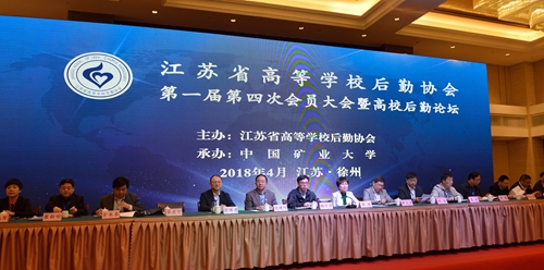 2018年4月16-18日,江苏省高等学校后勤协会第一届第四次会员大会暨高校后勤论坛在江苏徐州隆重召开。会议共分四个阶段进行。中共江苏省委教育工委副书记徐子敏、江苏省教育厅安全保卫与维护稳定处副处长韩叶祥等领导出席会议。江苏省高等学校后勤协会会长、副会长、常务理事、理事、会员代表、秘书长、副秘书长,各专业委员会(含分会、联盟)主任、秘书长,各片区片长、秘书长,高校分管后勤副校长、副书记,以及各高校后勤处长、总经理、党委(总支)书记、社会企业会员单位董事长及总经理等各级领导近400余人参加了本次大会。