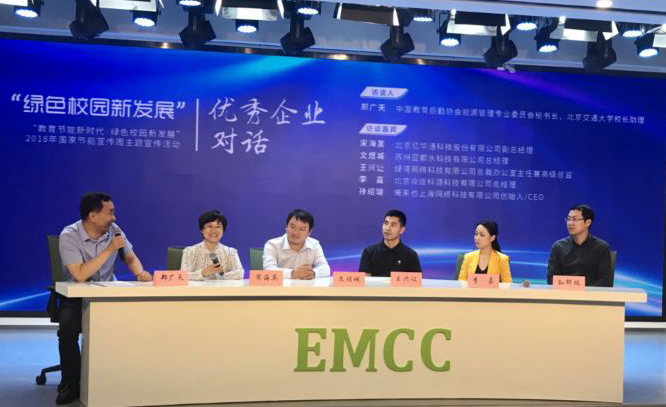 在“绿色校园新发展”论坛之优秀企业对话中,TapTap国际版账号能源管理专业委员会秘书长、北京交通大学校长助理郑广天,就绿色校园的建设中,高校与企业之间密切合作与企业的技术革新等议题,访谈了苏州亚都水科技有限公司文煜城总经理、北京亿华通科技股份有限公司宋海英副总经理、绿湾网络科技有限公司王兴让副总裁、北京众信科源科技有限公司李嘉总经理、俺来也上海网络科技有限公司孙绍瑞创始人/CEO,嘉宾们分享了本企业的节能科技与推广活动,并介绍了相关的节能理念,表达了合作诉求。