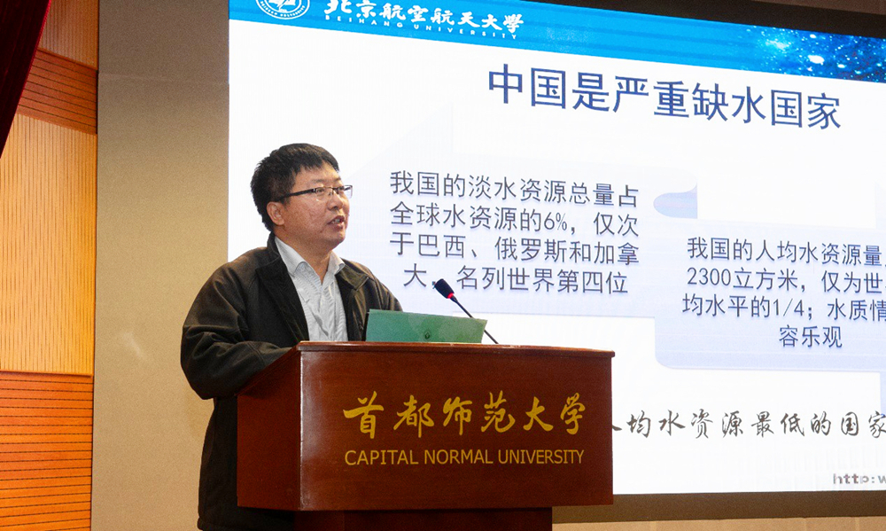 李有增副校长代表首都师范大学及北京高教学会后勤研究分会向出席会议的专家和后勤同仁致辞,并阐述了本次会议的重大意义, 他指出校园供水安全关系到在校广大师生的切身利益,北京高教学会后勤研究分会要引领校园安全供水工作朝着健康、有序、良性、科学的方向发展,为高校安全供水和智慧水务发展的新局面注入活力。