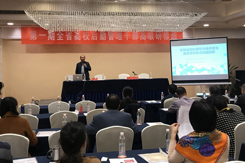 安徽省高校后勤管理服务中心副主任、安徽省高校后勤协会常务副秘书长胡孝玉作专题报告