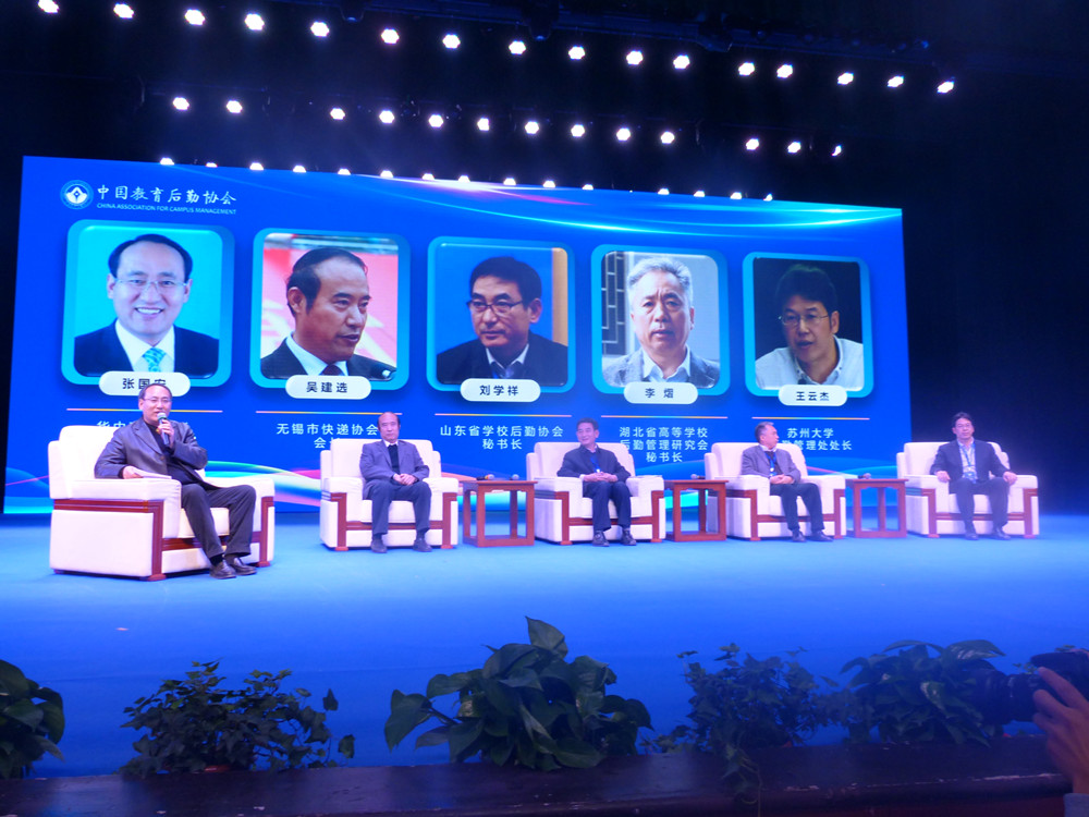 专题论坛环节分为两组进行,第一组对话由沈阳大学副校长刘克斌主持,四川省高校后勤协会秘书长高庆、哈尔滨工程大学后勤基建处处长李洪波、山东工商学院后勤管理处处长姜宗建、广船环保科技有限公司常务副总经理李志红参加。第二组对话由华中科技大学后勤集团总经理张国安主持,无锡市快递协会会长吴建选、山东省学校后勤协会秘书长刘学祥、湖北省高校后勤管理研究会秘书长李熠、苏州大学后勤管理处处长王云杰参加。嘉宾们分别从政府部门、地方后勤行业组织、学校、企业的不同角度,结合自己的实际工作经验,分别围绕“如何推进新业态、新产品进校园、满足校园后勤服务的新需求”以及“如何进一步推进《校园快递服务站点建设与服务规范》团体标准的贯彻落实及加快校园快递站点的建设”进行了对话交流,各抒己见,氛围热烈。