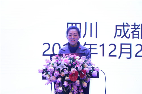 四川省高校后勤协会伙食专业委员会副主任、西南民族大学航空港校区后勤集团副总经理伍敏介绍四川伙专会工作情况