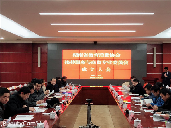 2018年12月28日,湖南省教育后勤协会接待服务与商贸专业委员会成立大会暨第一次主任会议在中南大学召开。湖南省教育后勤协会会长杨定忠、中南大学党委常委副校长黄健陵、湖南省教育后勤协会秘书长夏智勇、中南大学后勤保障部部长蔡恒学以及来自全省21所高校的38位代表参加了会议。大会由湖南省教育后勤协会接待服务与商贸专业委员会秘书长李江涛主持。