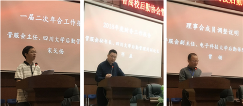 大会审议通过了管服会主任、四川大学后勤管理处处长宋戈扬所作的《工作报告》,管服会秘书长、四川大学后勤管理处副处长邓益所作的《2018年度财务工作报告》,管服会副主任、电子科技大学后勤保障部部长曾翎所作的《管服会一届理事会成员调整说明》。