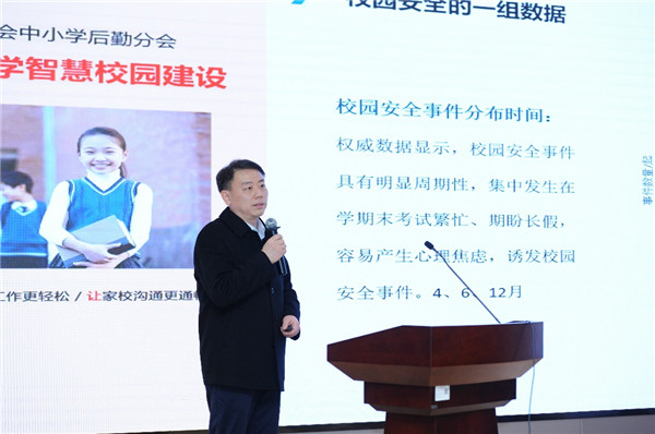 会上,北京高校后勤信息化推进工作组专家,首都师范大学智慧校园建设专家杨沅潼作专题报告《推进中小学教育智慧校园与信息后勤建设》。