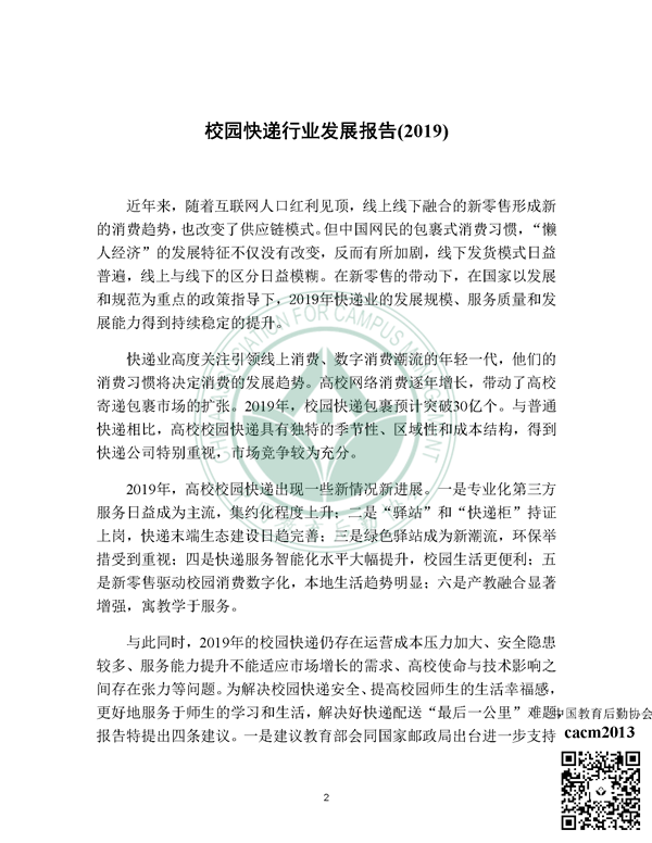2019年12月21日, 校园快递行业发展报告(2019)发布