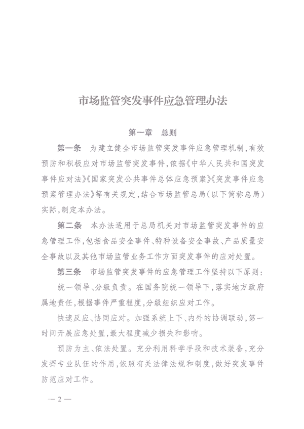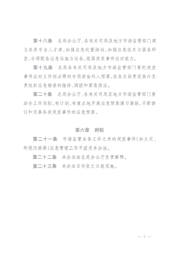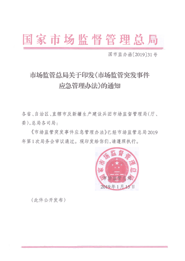 市场监管总局关于印发《市场监管突发事件应急管理办法》