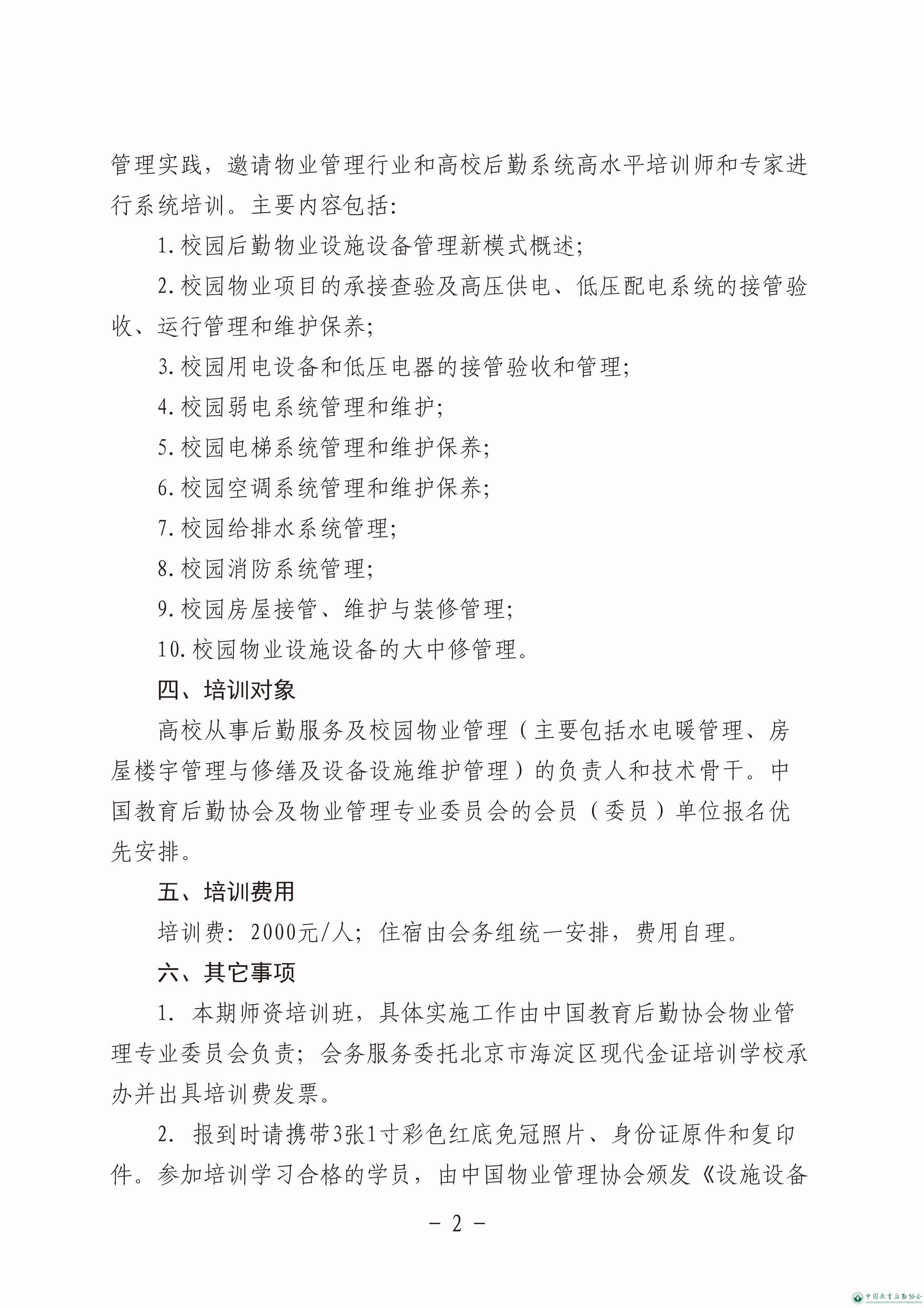 关于举办“全国高校后勤设施设备管理专业岗位师资培训班”的通知