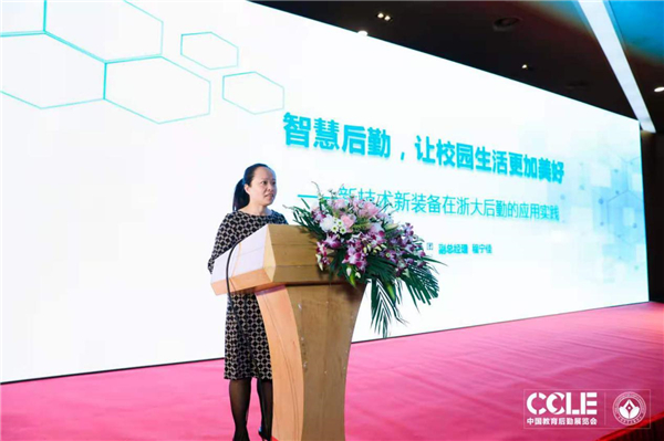 上海市学校后勤协会副会长、上海师范大学副校长张峥嵘致辞,他指出,上海市学校后勤协会始终坚持教育后勤信息化的创新发展,将后勤信息化建设作为重要组成部分纳入《上海高校后勤规划2035》中。他简要介绍了上海市学校后勤协会近年来在构建智慧校园方面取得的成效,希望各位后勤同仁抓住机遇,相互交流、相互借鉴,围绕后勤改革和后勤现代化建设,积极引入智能设施设备应用,加快后勤治理体系优化和后勤治理能力提升,推进智慧后勤发展,为助力实现教育现代化提供坚实支撑。