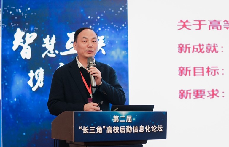 浙江省教育后勤基建协会会长、浙江师范大学副校长潘慧炬致欢迎词,他代表浙江省教育后勤基建协会对本届论坛的举办表示热烈的祝贺。他简要介绍了浙江省的高等教育和高校后勤改革发展的情况。潘慧炬表示,教育现代化需要现代化教育后勤来支撑、作保障,现代化教育后勤必定是高度专业化的、标准化的和智能化的,这也是教育后勤今后发展的方向和必由之路。希望本次论坛能拓宽我们的视野和思路,分享经验和技术,增进友谊和合作,进一步实现“智慧互联、携手共进”,有力推进长三角“三省一市”高校信息化建设,共同为实现教育现代化提供坚强后勤保障。