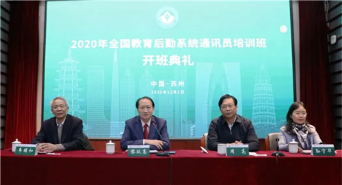 苏州大学党委常委、总会计师周高代表苏州大学致欢迎辞。首先,周高向各位学员介绍了苏州大学这座“有长度、有宽度、有高度、有深度、有温度”的学府,阐述了“养天地正气,法古今完人”校训下的苏大文化,以及苏州大学在融入长三角发展一体化当中所做的工作。他表示,苏州大学始终致力于打造一流的高校后勤,并愿意与全国后勤同仁分享改革经验,希望在参加培训的同时,学员们多作交流,互相学习。最后,周总会计师预祝培训班圆满举办,并祝各位通讯员讲好后勤故事,为中国教育后勤工作增光添彩。