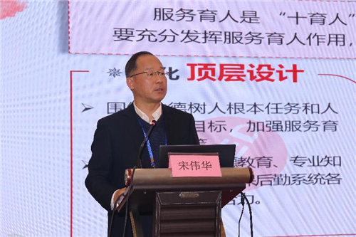 南京理工大学后勤服务中心主任宋伟华以《高校后勤服务育人工作的思考与实践》为题进行发言。他从新时代服务育人的内涵和要求,后勤服务育人的实践与成效、践行后勤育人使命的思考与举措三个方面,深入阐述了融入“大思政”工作格局,践行“大后勤”育人使命的时代意义。他讲道,学校“大后勤”服务育人体系,是“大思政”工作格局的重要延伸。学校要不断丰富服务育人内涵、强化服务育人意识、提升服务育人能力、搭建服务育人平台、创建服务育人品牌,创新服务育人方法,在落实立德树人根本任务、培养创新型精英人才中发挥重要作用,用一流的服务保障水平和一流的服务育人成效推动世界一流大学建设。
