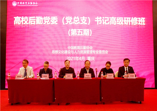 重庆市教委副巡视员胡斌在致辞中对各位学员、专家、领导的到来表示热烈的欢迎,向学员们简要介绍了重庆高校后勤改革发展的现状和趋势。他希望各位学员珍惜此次在重庆的研修机会,以研修明责任,以研修谋未来,以研修增能力,以研修强服务,把研修活动与学习党史教育、与迎接建党百年、与谋划十四五发展、与提升后勤服务水平紧密结合起来,加强理论学习、实践运用和交流互鉴,确保取得研修实效,推动实际工作。