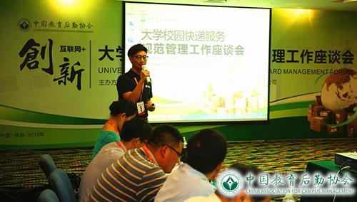 黎玖高秘书长主持了座谈会。他在讲话中提到,随着电子商务的迅猛发展,校园快递服务的需求量不断增长,但目前物流快递在大学校园存在较多问题,主要包括:场地条件简陋,环境“脏乱差”,各家快递公司在校园没有固定运营场所,包裹快件就地堆放的现象严重;联系收件师生困难,影响派送效率;取件和寄件流程不科学,各家快递标准不一致,收费模式混乱;大量快递车辆和人员自由进出校园,给校园带来较多的安全隐患;以及各个快递公司无序竞争,技术手段落后,导致服务效率低下,形成恶性循环等。有的学校干脆就不让快递进校园,师生只能到校门口的地摊取寄快件。如何规范管理大学校园快递服务工作,这是高校后勤和快递企业共同面临的课题。加快建立“开放、规范、诚信、安全”的校园快递环境,引导校园快递服务良性发展,也是协会履行社会组织职能的一项具体工作。我们要主动适应现代物流和移动互联网时代发展趋势,积极深化后勤社会化改革,优化后勤服务资源配置,促进国务院提出的“快递进校园”的要求早日全面实现。